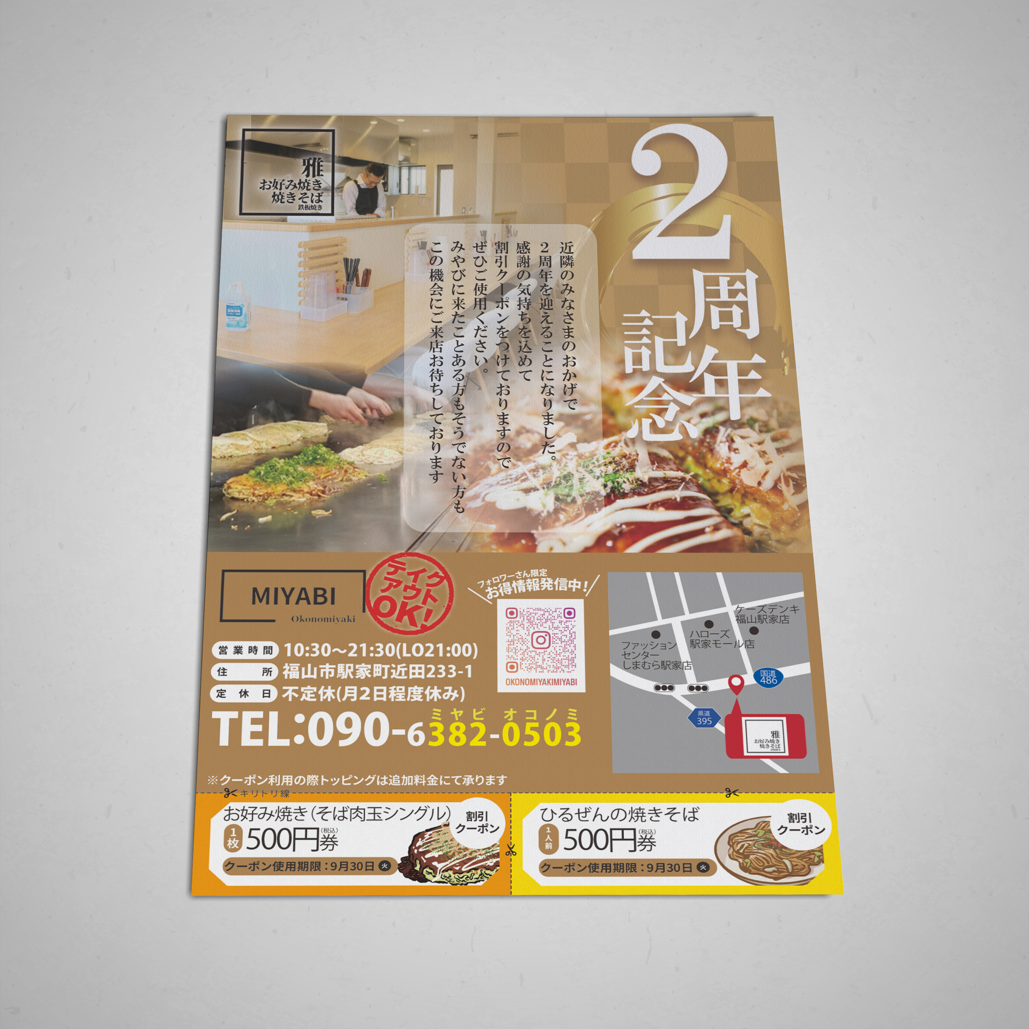 クラウドワークス コンペ➆ crowdworks competition➆ お好み焼き 焼きそば 鉄板焼き 「雅」 Miyabi-Okonomiyaki Yakisoba Teppanyaki チラシ flyer
