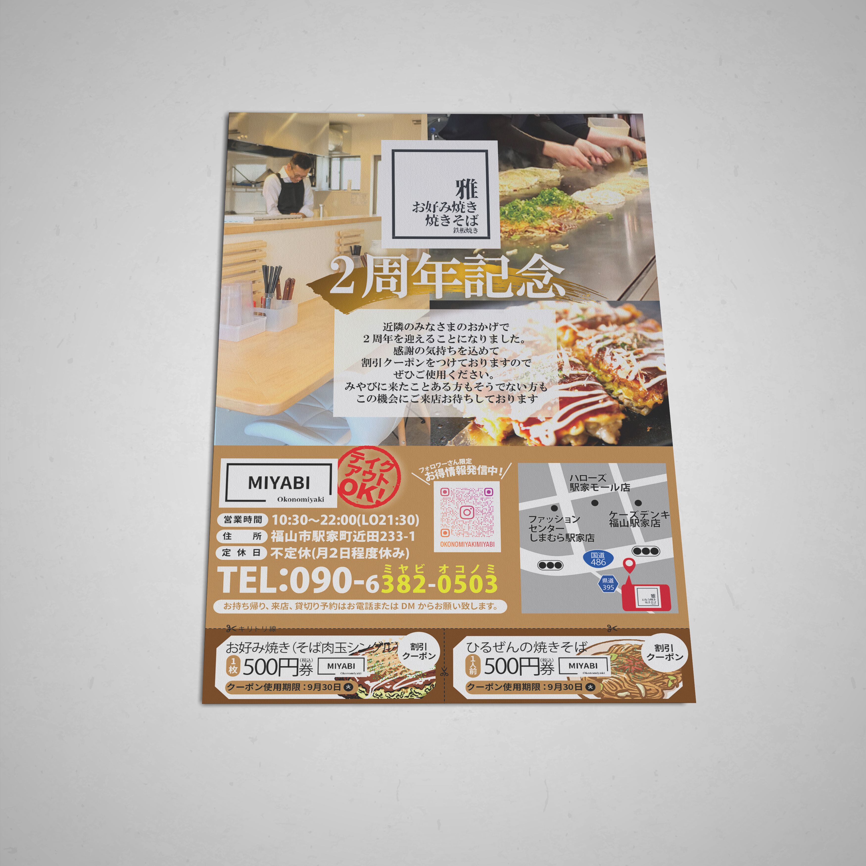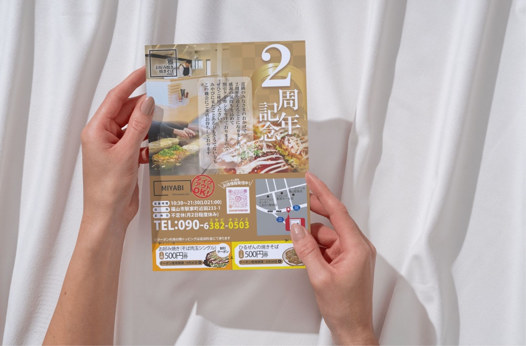 - 依頼内容:隣の住宅・企業に配布する、2周年記念クーポン付フライヤー