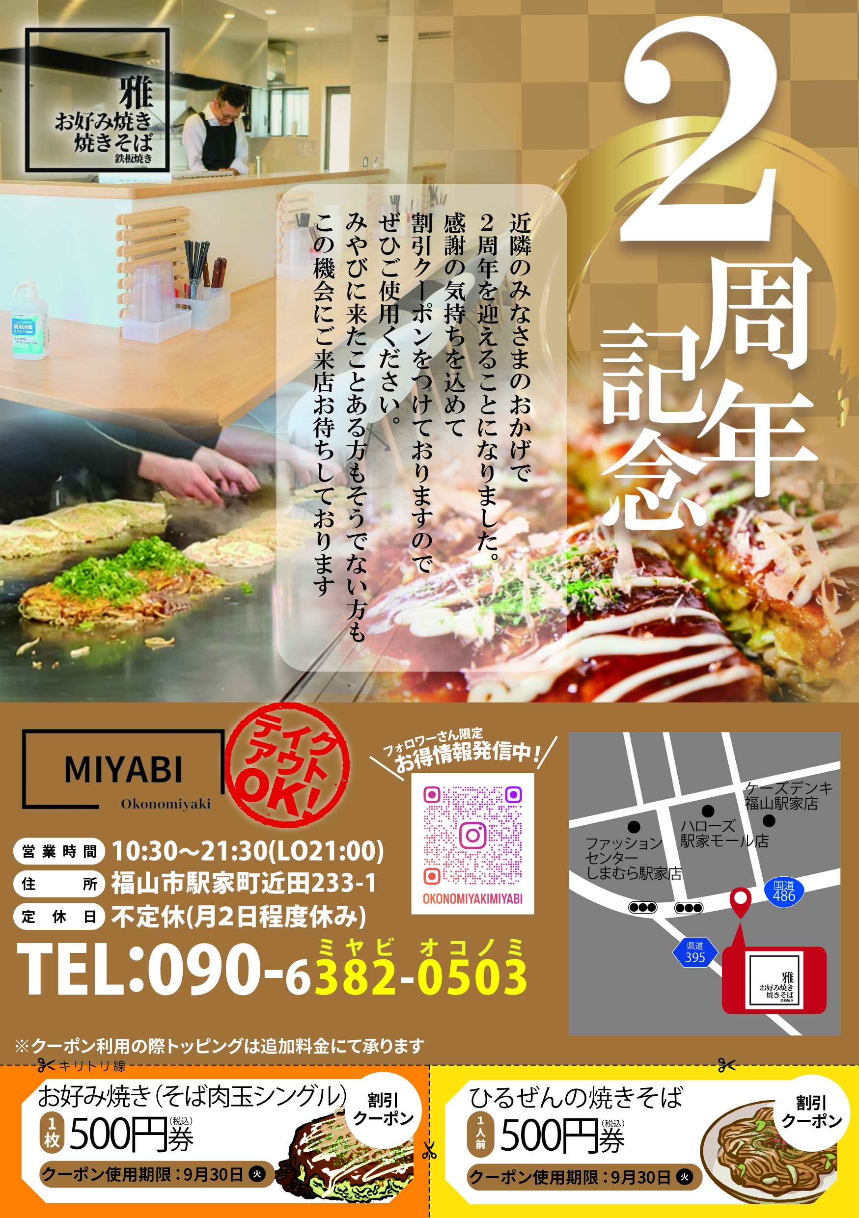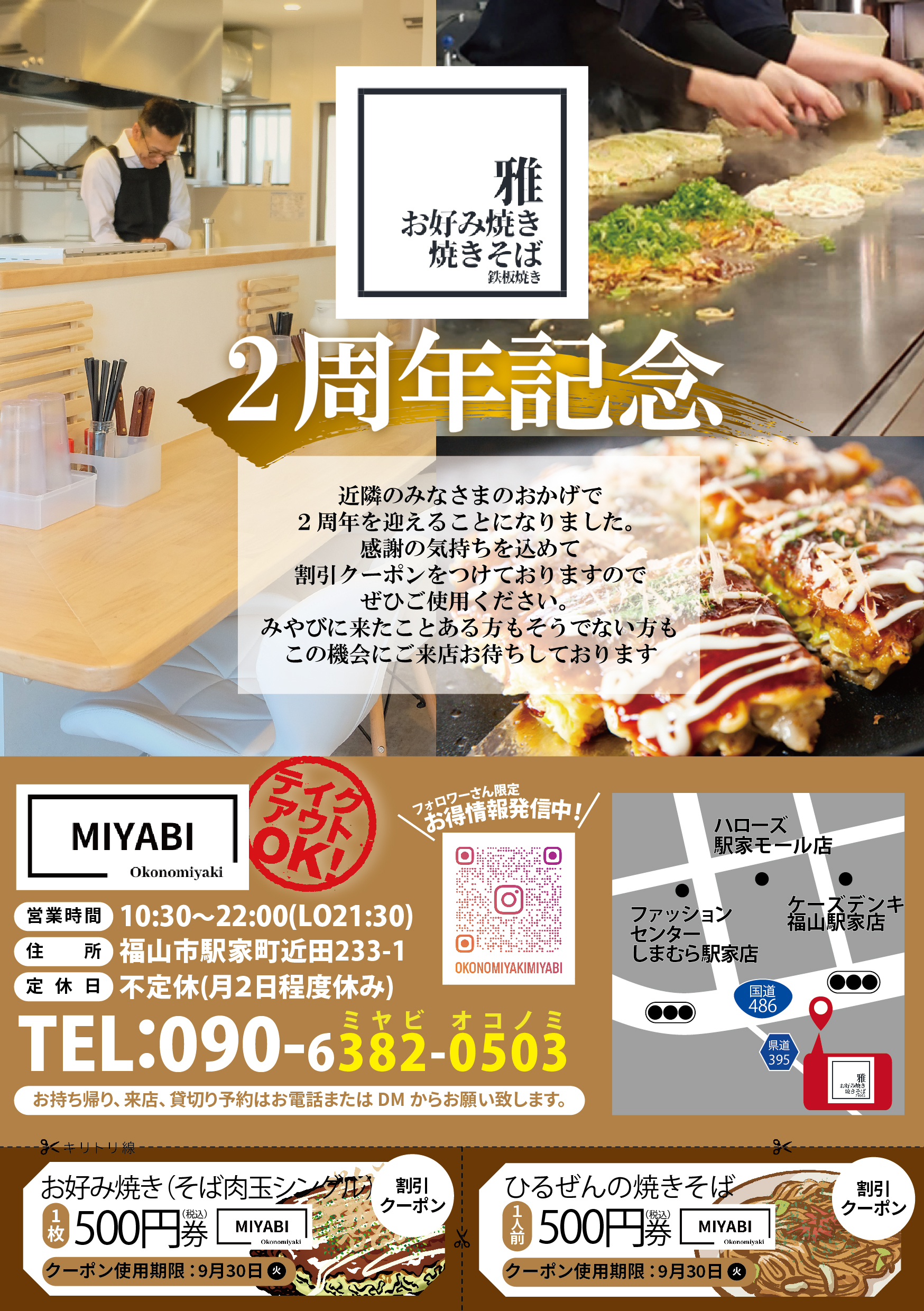クラウドワークス コンペ➆ crowdworks competition➆ お好み焼き 焼きそば 鉄板焼き 「雅」 Miyabi-Okonomiyaki Yakisoba Teppanyaki チラシ flyer